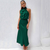 Own the room in an elegant halter neck midi dress that whispers luxury with every move. A sculpted high neckline with a draped scarf-like detail wraps beautifully around your neck, creating a stunning focal point that exudes sophistication. The sleeveless design showcases your shoulders while the smooth, body-skimming skirt flows to a graceful midi length with a subtle flared hem. Effortlessly refined and undeniably feminine. Perfect for cocktail evenings, wedding guest moments, anniversary dinners, or any occasion where you want to leave a lasting impression.