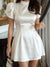 Celebrate your achievement in the Charlotte white graduation dress — where timeless elegance meets modern sophistication. Sculptural puff sleeves create a striking silhouette that commands attention, while the refined high neck adds an air of polished grace. A cinched waist flows into a flared mini skirt that moves beautifully with every step across the stage. From commencement ceremonies to celebratory dinners, bridal showers, or upscale summer events, the Charlotte makes every milestone unforgettable.